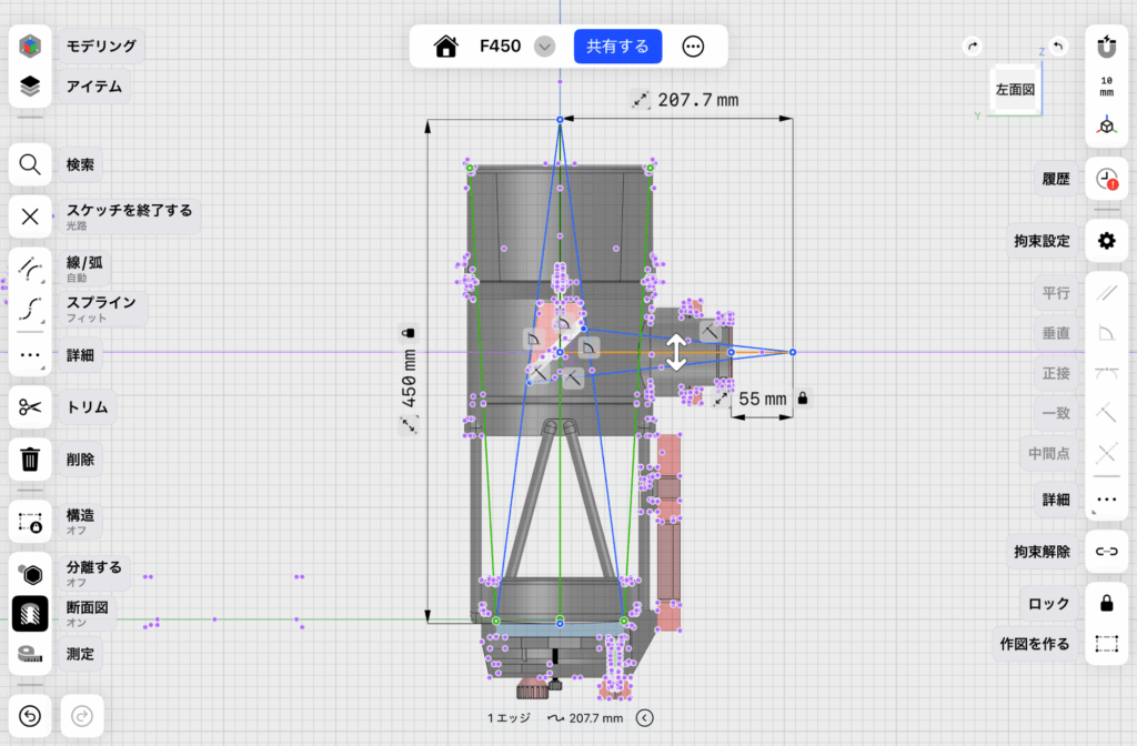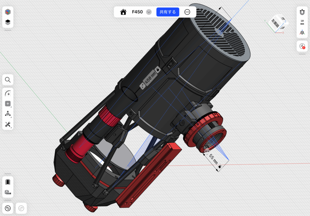また、A&B photo Enifさんにトラス鏡筒について問い合わせたところ、実物をお借りすることができました。実物を実測したり、改善点を検討したりして設計を詰めていきました。