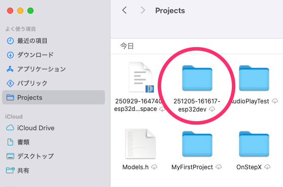 処理が終わるとディフォルト保存先の書類フォルダに「日付-時間-使用するボード」のフォルダが出来上がります。このフォルダを分かりやすい名前に変更します。ここでは、「OnStepX-10.26g」と変更します。