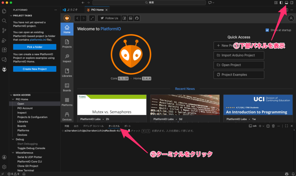ArduinoIDEの代わりにPlatformIOを使う方法②